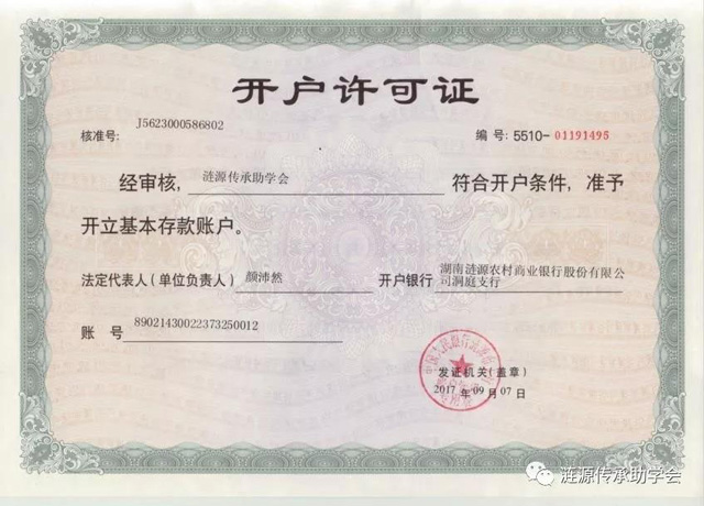 捐款账户:涟源传承助学会