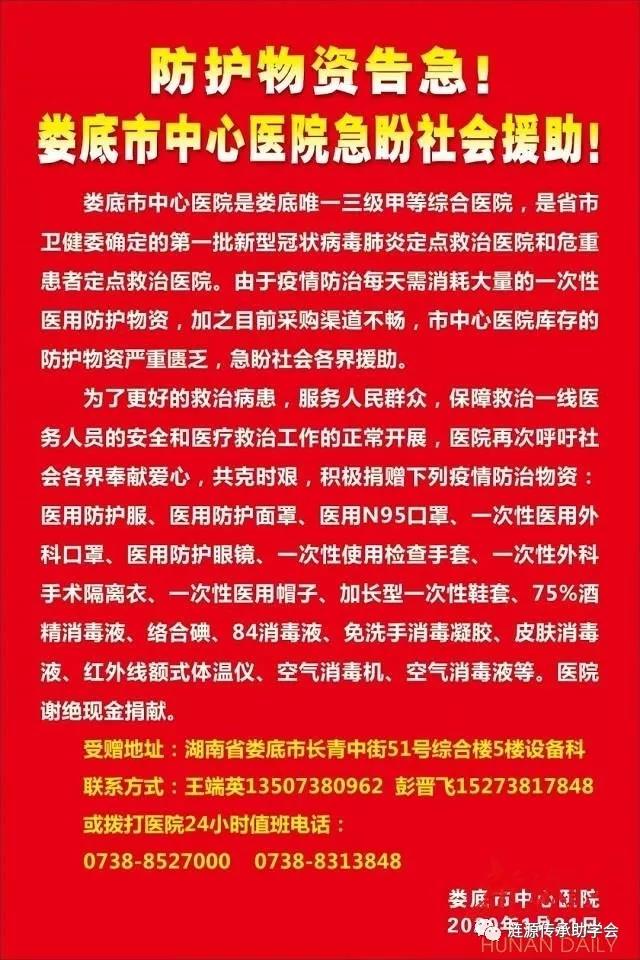 因为疫情传播迅速,又值春节期间,同时,此次传染之病疫,严重状况前所未有。因此,娄底各县市防控机构,尤其是直面防控第一线的医院,如娄底中心医院、涟源人民医院等,医护物资捉襟见肘,几无可用,众多一线医护人员,严重缺乏正常防护条件。