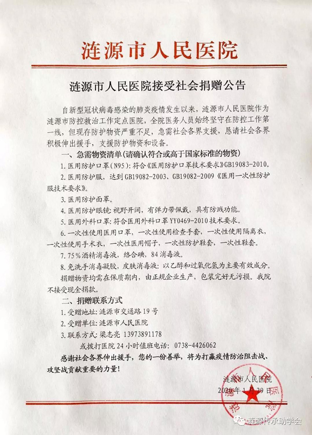 遇此万难之时,涟源传承助学会以微薄之力,倡天下为公之大义,真诚期望娄底各界人士,奉献股肱之力,共同守护我们的家园——娄底!