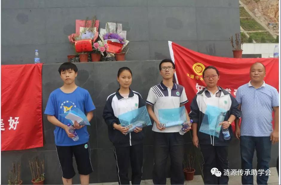 涟源传承助学会颜沛然秘书长为演讲获奖的同学们颁发奖品合影。