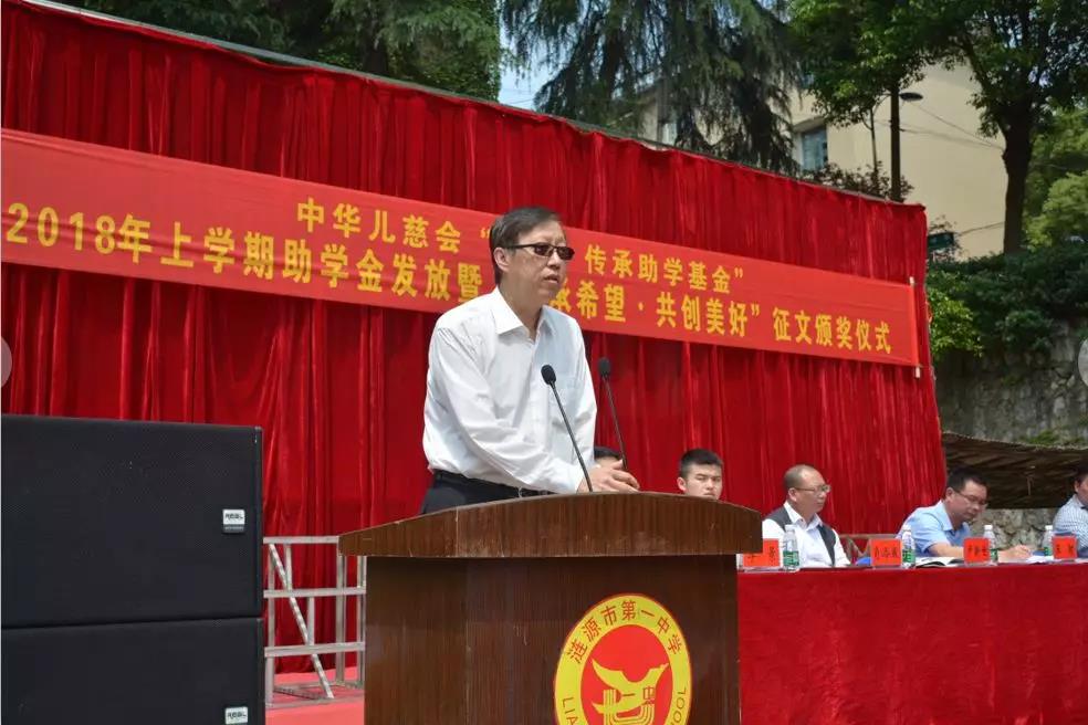 涟源市委常委、统战部长王澍做重要讲话,提到:教育承载着国家的未来,人民的期盼。近两年来,我市在教育方面取得了优异的成绩,成为湖南省教育强市。但我市系武陵山片区区域发展与扶贫攻坚县市,扶贫必扶智,童心·传承助学基金秉承着一贯的宗旨,已将“传承希望和共创美好”的种子撒播在人民的心中,希望同学们珍惜来之不易的学习机会,不负众望,也渴望社会各界和有识之士能积极参与到公益活动中来,一如既往地支持涟源的发展,将关心下一代和扶贫助学这一功在千秋、惠泽后人的崇高事业推上更高水平!