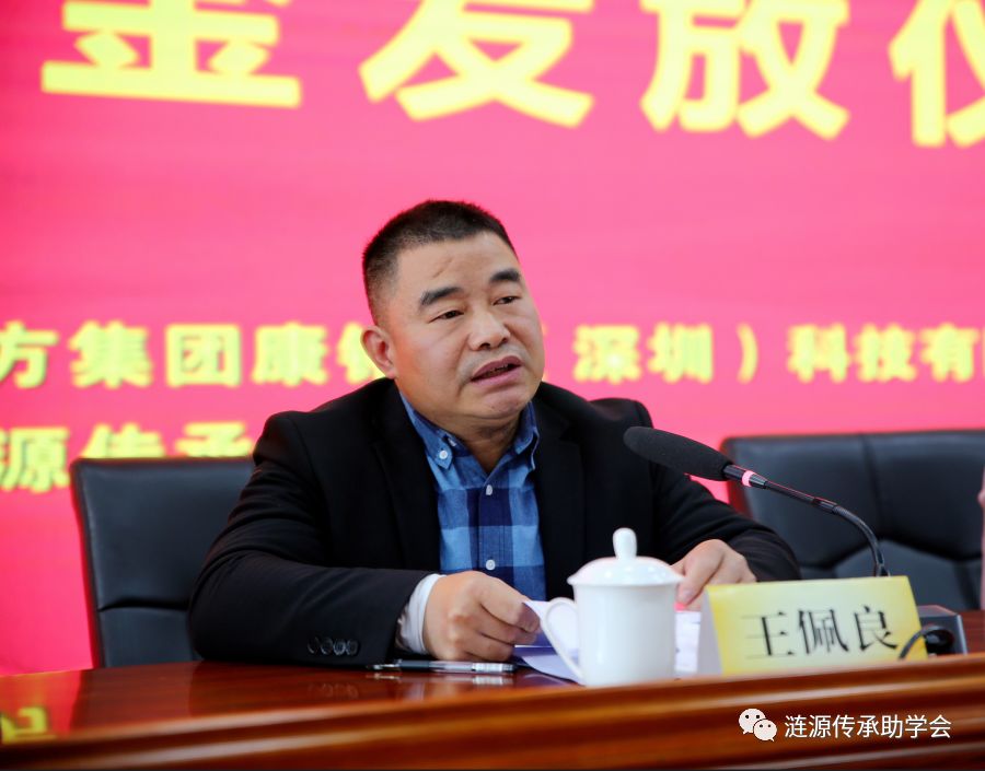 涟源传承助学会副会长刘海凡介绍了助学会项目情况,截止到目前,涟源传承助学会共资助学生500余名,发放助学金近300万元,受资助的学生遍布清华、复旦等众多知名学府。