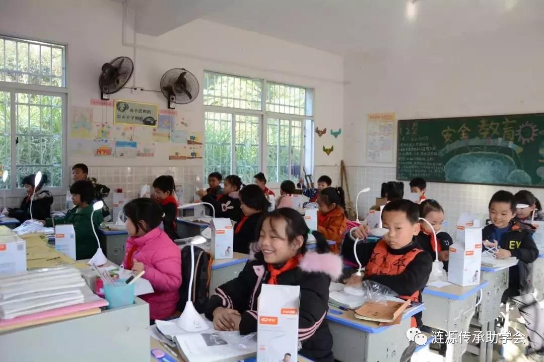 捐赠现场,小分队把200多盏康铭台灯一一发放至孩子们的手里。