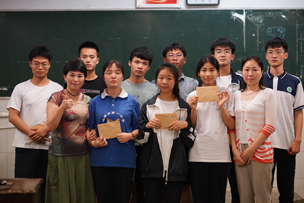 6月24日晚,涟源传承助学会的志愿者们,将2019年下学期——2020年上学期“励志*进取”奖学金一一 发放到涟源一中214名学生手中。
